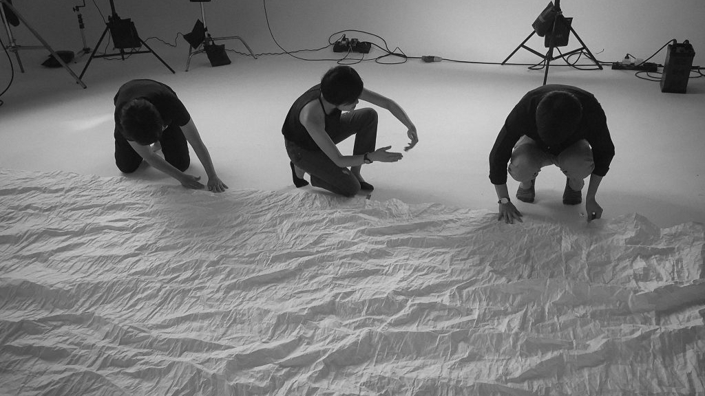 เราเอาสิ่งที่ไม่ใช่น้ำมาจำลองให้มันดูคล้ายแม่น้ำ ขณะที่เราสร้างภาพ สิ่งที่ทำคือบริหารจัดการแสงและเงาให้ภาพ การทำกระดาษยับคือการสร้างแสงและเงาให้กับพื้นผิวของกระดาษเรียบ คอนทราสที่ชัดขึ้นมาก็กลายเป็นเงื่อนไขให้สิ่งนั้นๆ เป็นตัวแทนของสิ่งที่ทำให้คนรับรู้ได้ ผมและช่างภาพที่ถ่ายก็พยายามทำทุกอย่างให้กระดาษกลายเป็นแม่น้ำ แต่พบว่ายิ่งทำมากเท่าไหร่มันก็ยิ่งไม่เป็น แต่เมื่อลองมามองดูดีๆ ในกระบวนการนี้มันจะถูกมองเป็นอะไรได้ไม่มากนัก หนึ่งคือ มองเป็นกระดาษยับ สองคือ มองเป็นกระดาษยับที่เหมือนแม่น้ำ สามคือ มองเป็นภูเขาน้ำแข็ง แล้วผมอยากได้ทั้งหมด เมื่อมองภาพแล้วมันจะมีความคลุมเครือของทั้งสามอย่างนี้ในหัวเรา แต่ท้ายที่สุดถ้าสมองเราจะตัดสินให้มันคว่ำไปทางหนึ่ง แล้วผมอยากให้มันคว่ำไปที่แม่น้ำ ส่วนของแต่ละบทก็คือส่วนหนึ่งของแม่น้ำแต่ละสาย คือแนวคิดของหนังสือเล่มนี้ที่ให้มันเป็นสายน้ำ