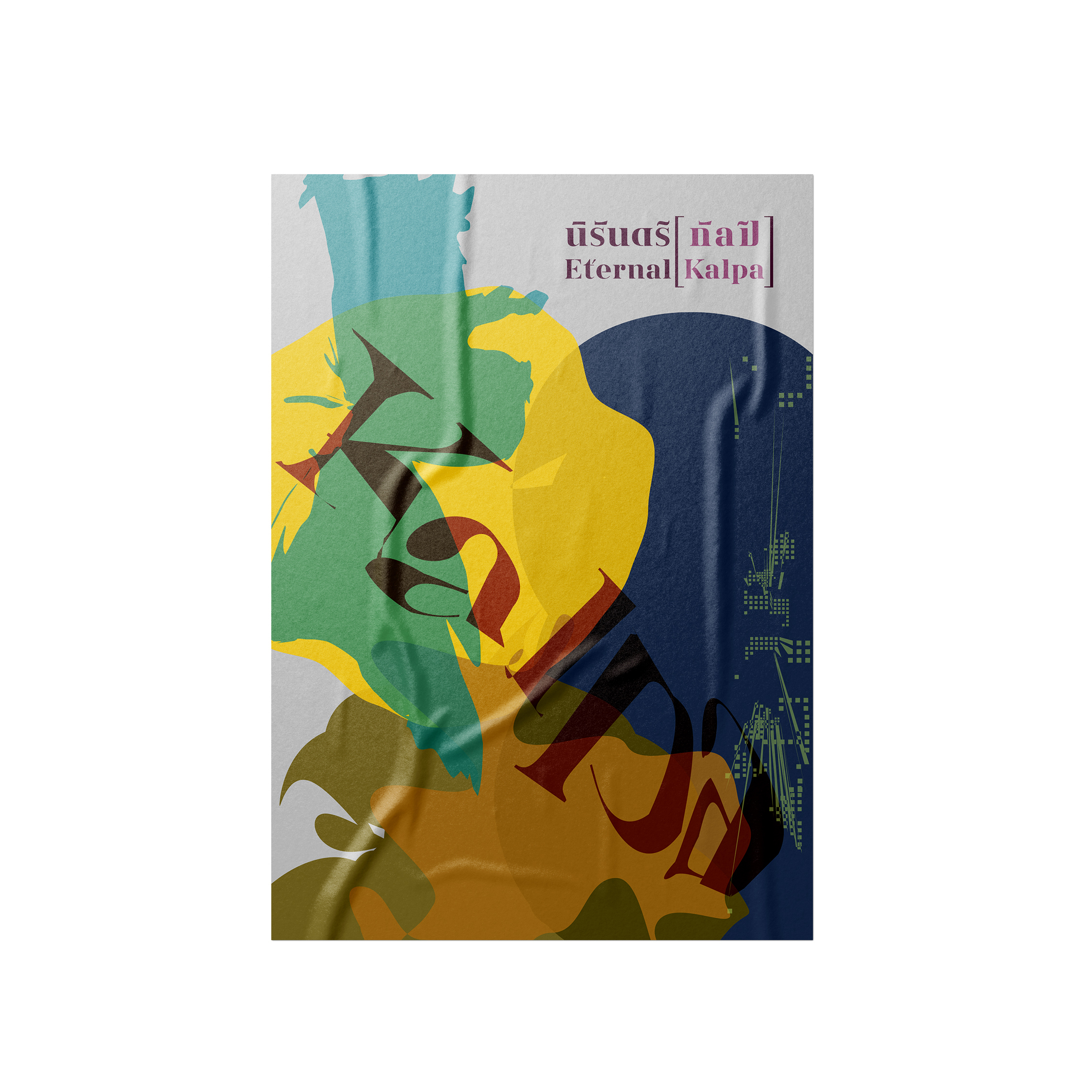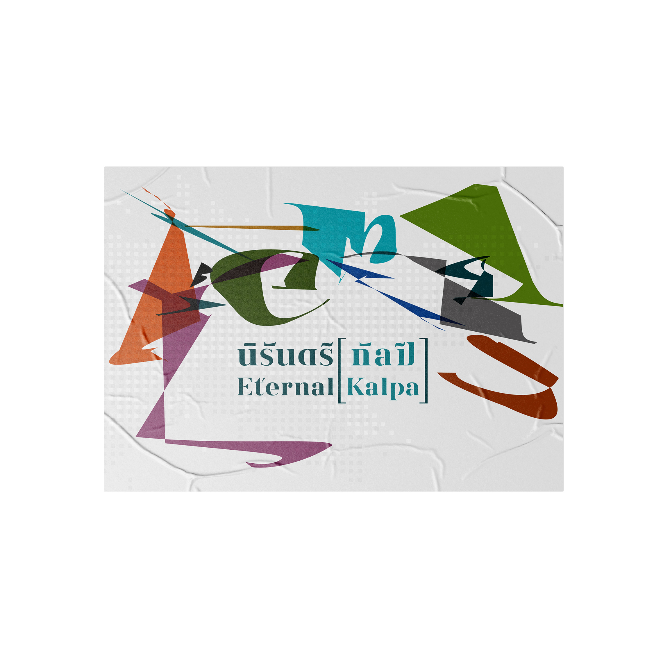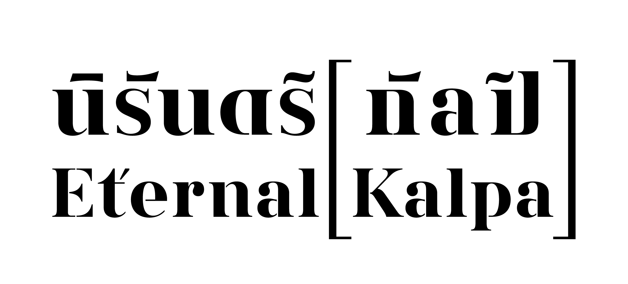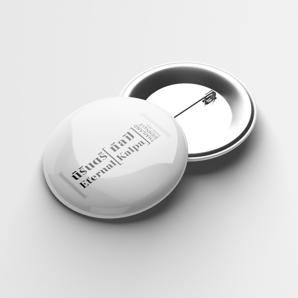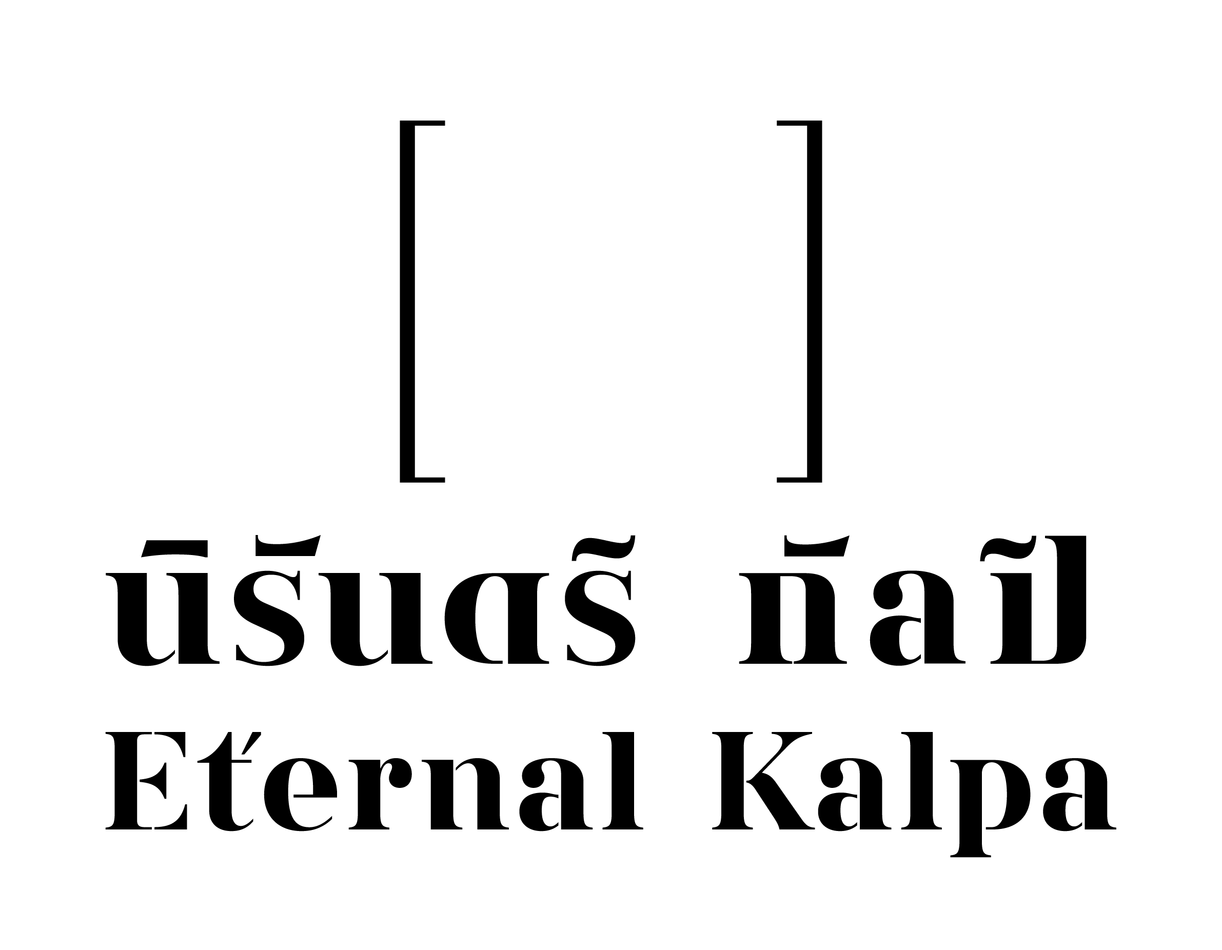 The symbol [ ] will be used in conjunction with the words “นิรันดร์ [กัลป์]” and “Eternal [Kalpa].” The square brackets will enclose “กัลป์” and “Kalpa,” signifying “a space and time of various possibilities” in different aspects or specific artistic interpretations. Meanwhile, the typography for “นิรันดร์ [กัลป์]” and “Eternal [Kalpa]” has been designed with the concept of allowing some consonants to be shared between both Thai and English, reflecting the mutable status and meaning of individual characters.