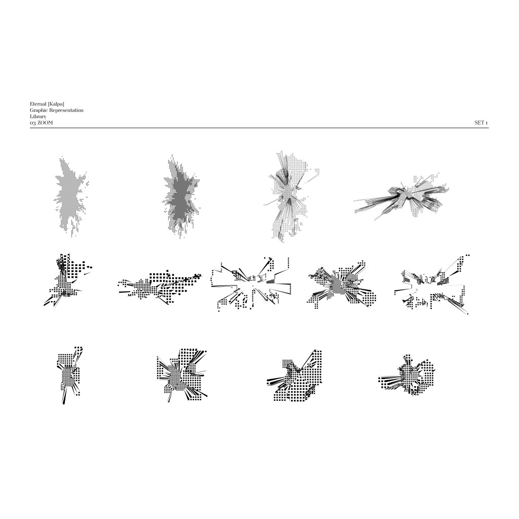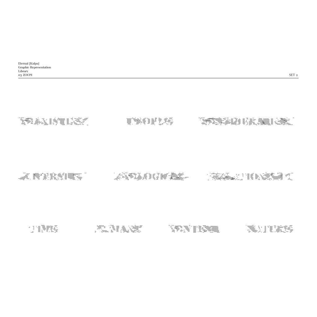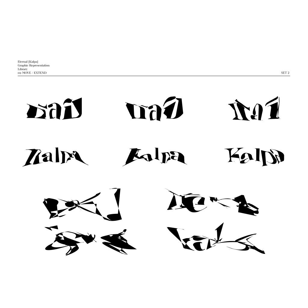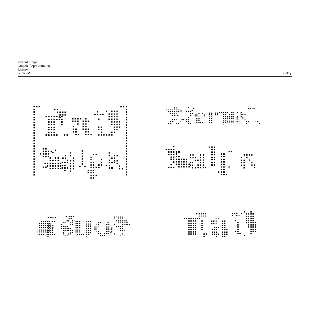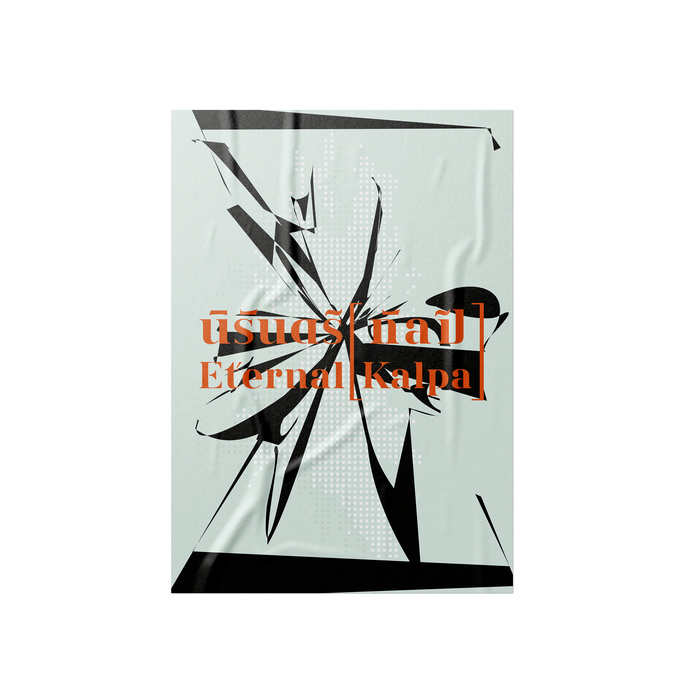 The symbol [ ] will be used in conjunction with the words “นิรันดร์ [กัลป์]” and “Eternal [Kalpa].” The square brackets will enclose “กัลป์” and “Kalpa,” signifying “a space and time of various possibilities” in different aspects or specific artistic interpretations. Meanwhile, the typography for “นิรันดร์ [กัลป์]” and “Eternal [Kalpa]” has been designed with the concept of allowing some consonants to be shared between both Thai and English, reflecting the mutable status and meaning of individual characters.