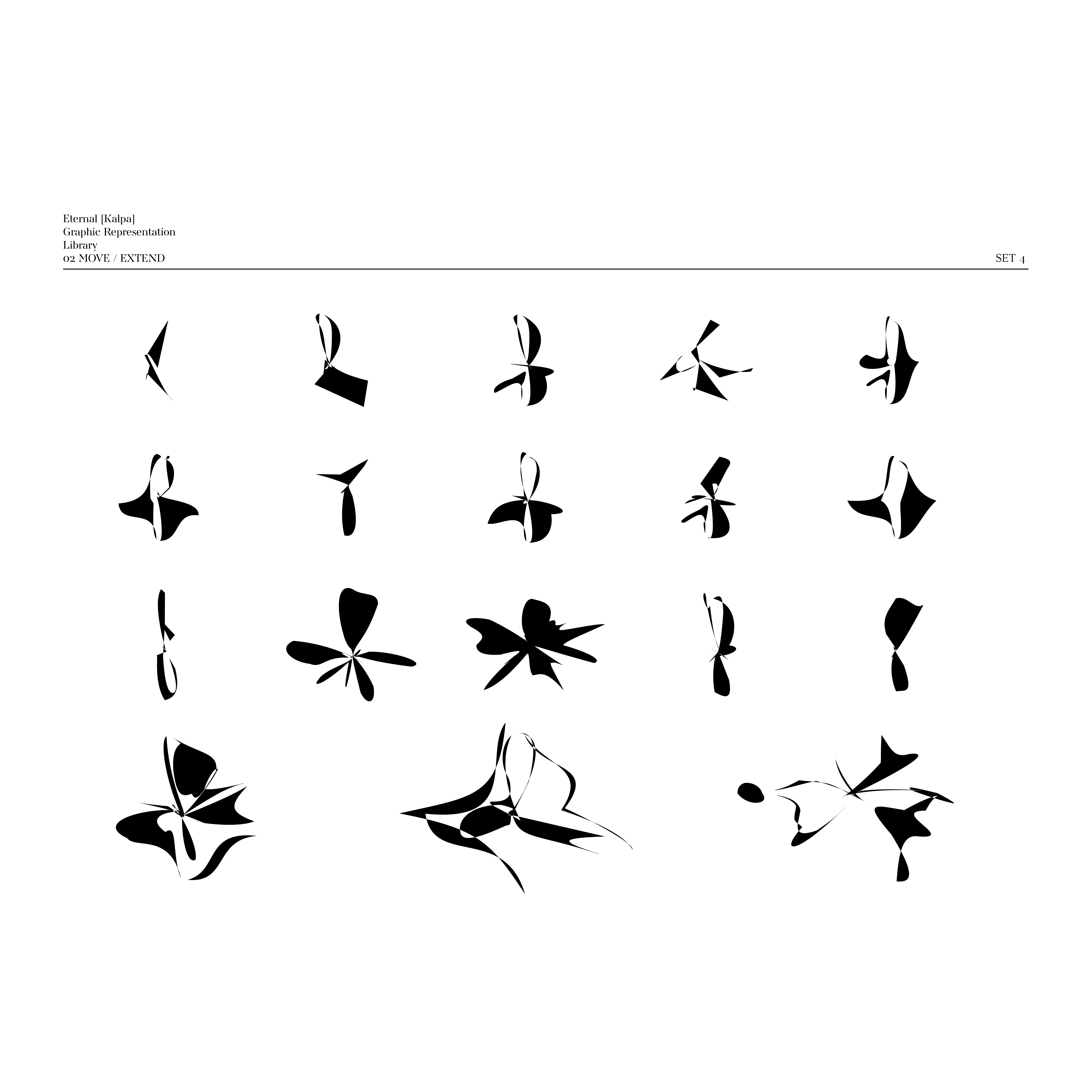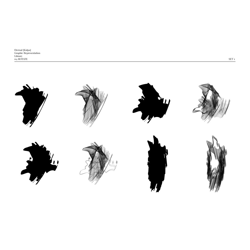 Rotation-Transformation: This condition explores organic forms and natural cycles. When an image within the square bracket [ ] is “rotated,” it leads to the emergence of free-form shapes. Rotation can convey the cyclical nature of time and continuous transformation, suggesting a return to the origin and the potential for new growth.