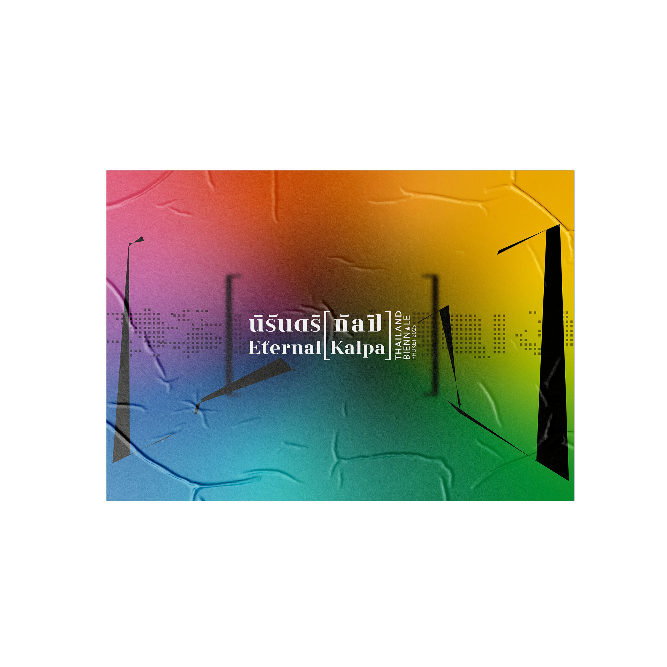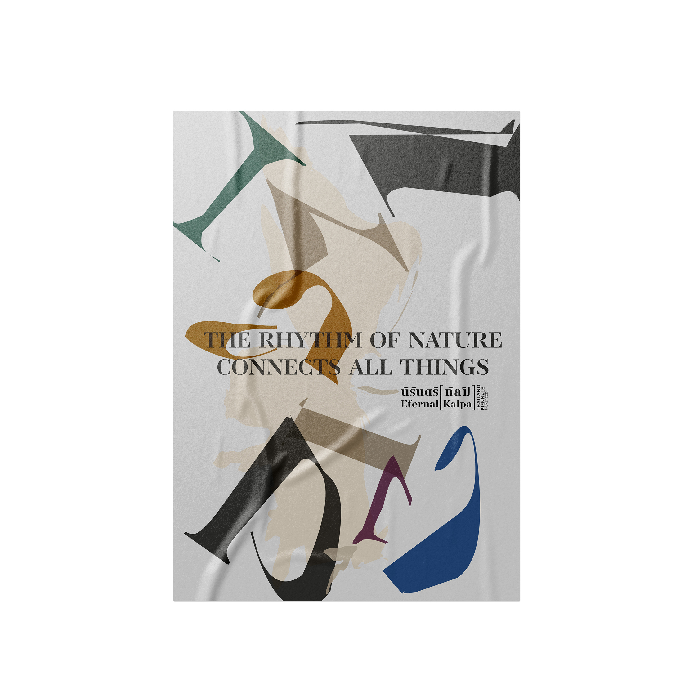 The identity design project for the international contemporary art exhibition, Thailand Biennale 2025, themed “Eternal [Kalpa],” aims to reflect the intricate relationship between humanity and nature, focusing on sustainable coexistence amidst ecological degradation, technological threats, and anthropocentric exploitation. Through the diverse perspectives of over 60 artists on the island of Phuket, the design seeks to present the impermanence and continuous transformation inherent in this relationship. The primary challenge was to create an identity that is fluid and adaptable yet cohesive enough to effectively communicate the image of an international contemporary art exhibition.